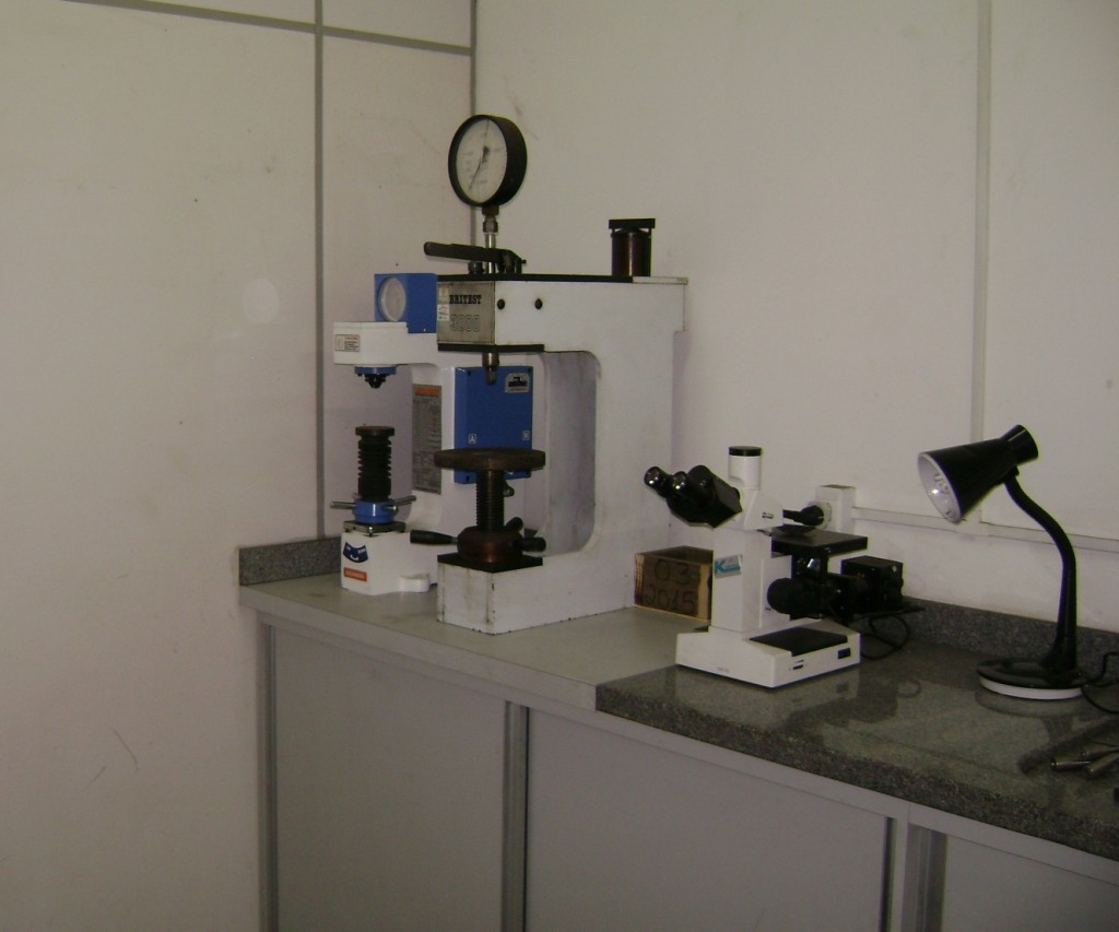 Análises químicas e ensaios mecânicos (Durômetro/Espectrômetro/Microscópio)